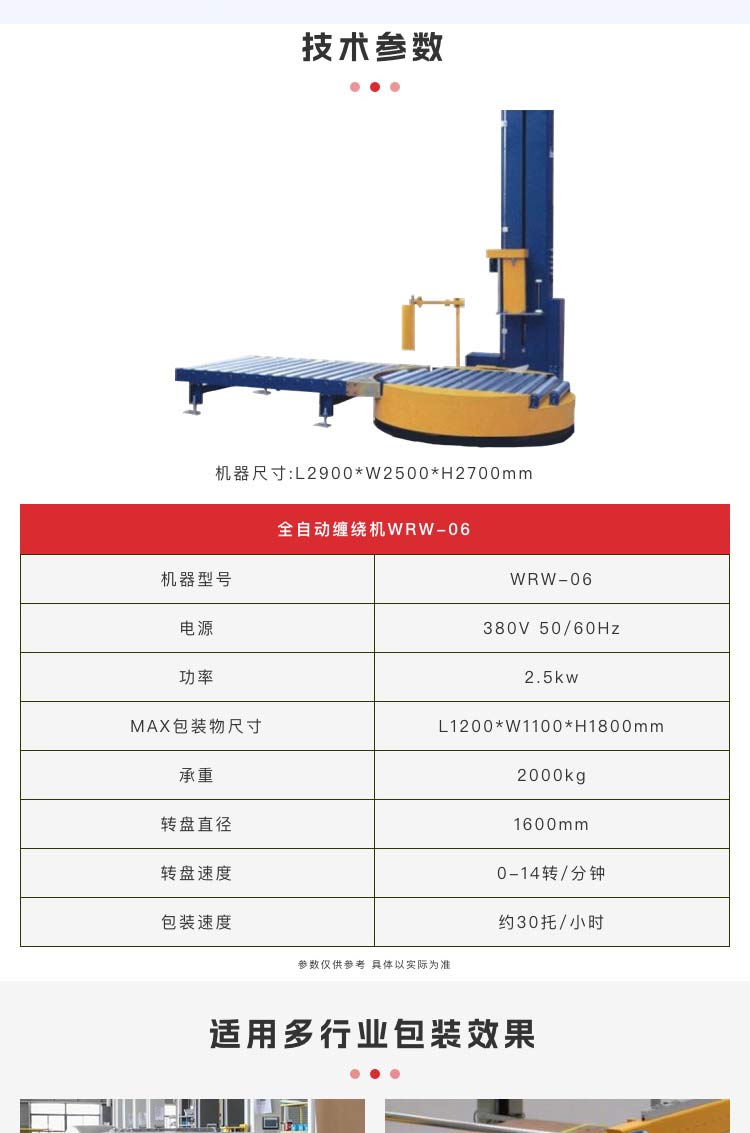 介紹:在線纏繞包裝機是適用流水線作業(yè)的包裝機械,非常適用現代化企業(yè)的自動化包裝的需要,對提高包裝效率、降低勞動強度、利用人力資源,起到非常積極的作用.可配套自動覆膜機,實現裹包.在化工、電子、食品、飲料、造紙等行業(yè)包裝線中得到廣泛應用 采用PLC可編程控制器及人機對話觸摸屏; 無人化操作,自動進料、上膜、纏繞、切膜、貼膜、出料;自動警示,自動故障報警等; 操作簡單,性能穩(wěn)定.